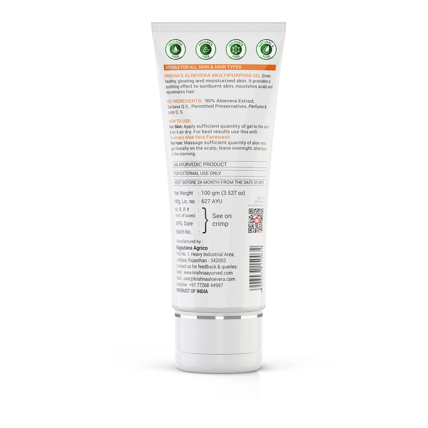 Krishna’s Aloe Vera Gel helps to hydrate skin, fight problems of pimples, acne & wrinkles. Aloevera Gel moisturizes the skin while keeping it healthy and glowing. Regular use of Krishna’s Aloe Vera gel aids in relaxing itches and irritation caused by rashes, shaving, or sunburn.