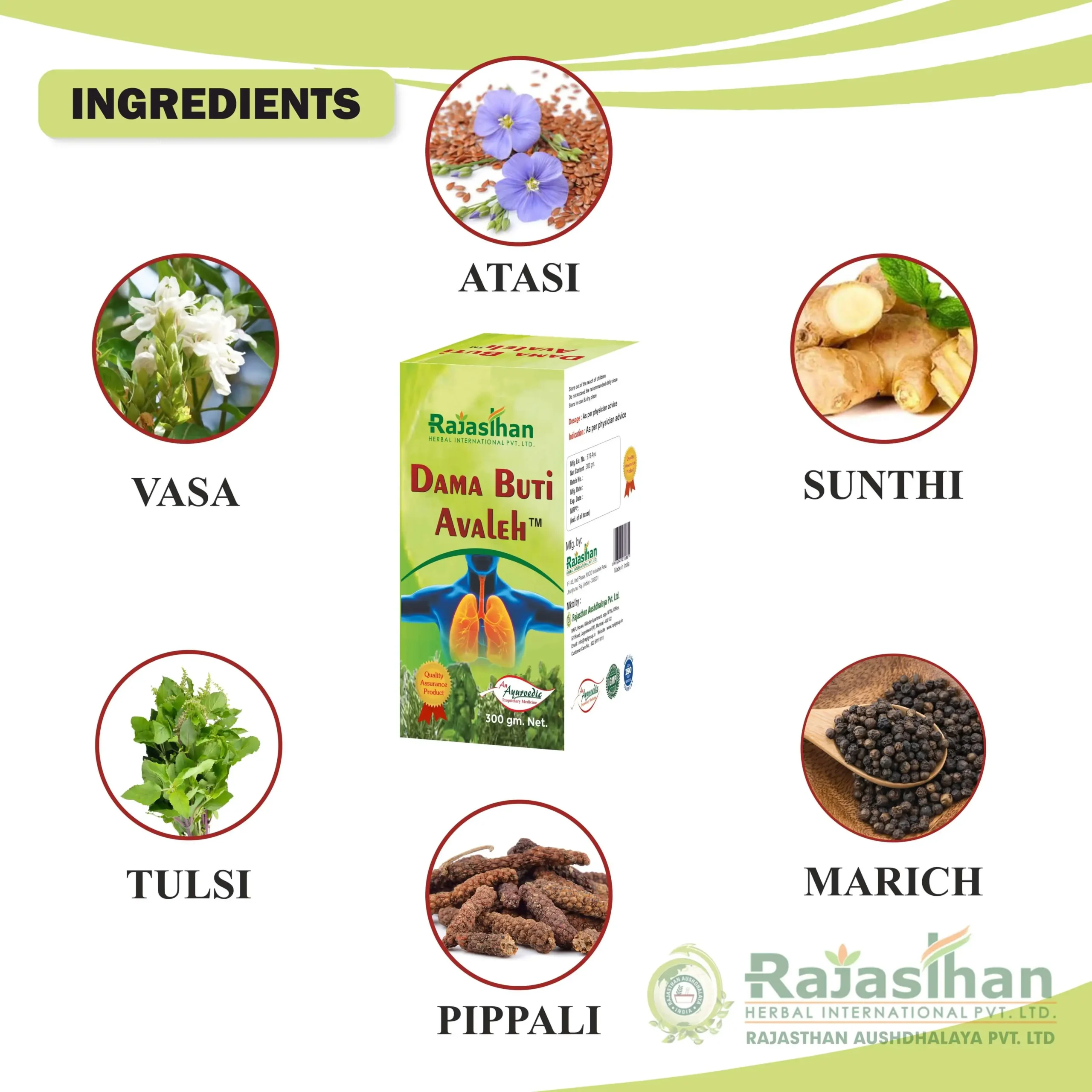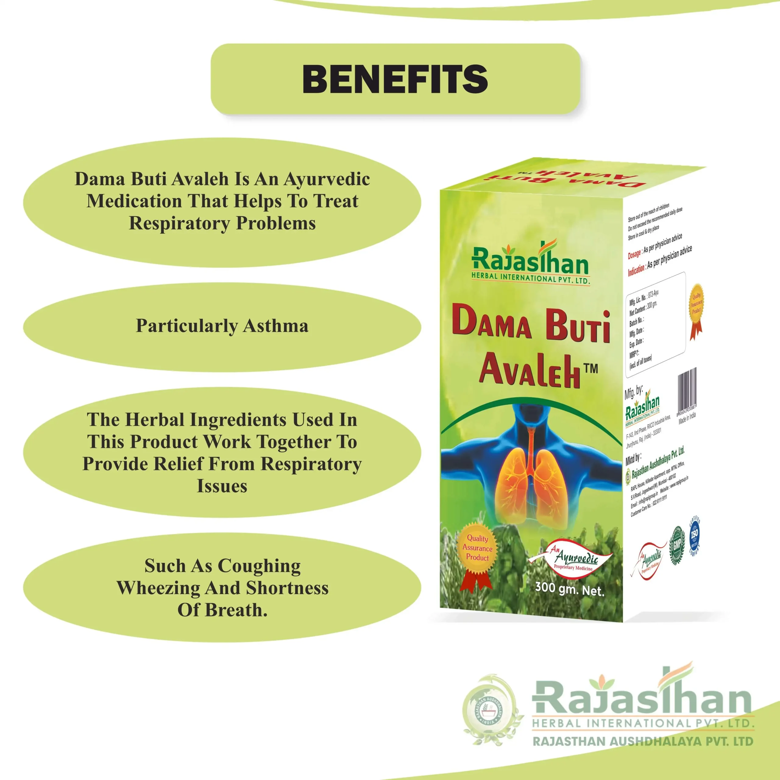 • Dama Buti Avaleh is an ayurvedic medication that helps to treat respiratory problems, particularly asthma.