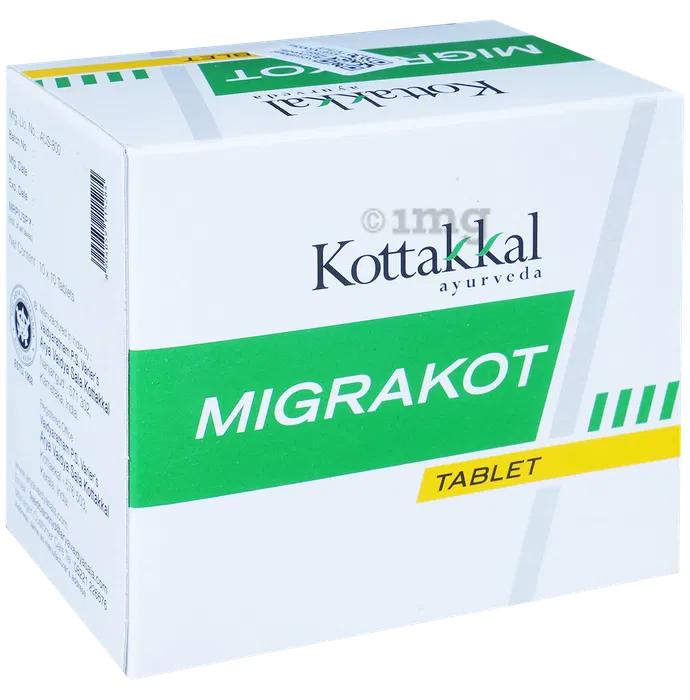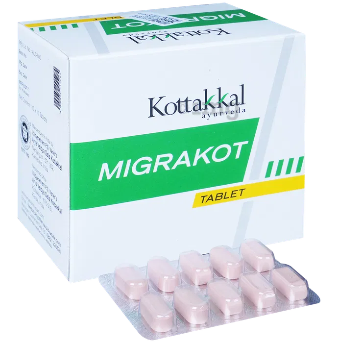 Kottakkal Ayurveda Migrakot Tablet is an effective ayurvedic medicine for treating migraine. It helps to reduce headache due to migraine that occurs on one side of the head and causes strong throbbing pain or a pulsating feeling. The discomfort is so intense that it hinders your everyday work. Nausea, vomiting, and sensitivity to light and sound are commonly associated with it. The migraine episodes might continue for hours or even for days.
