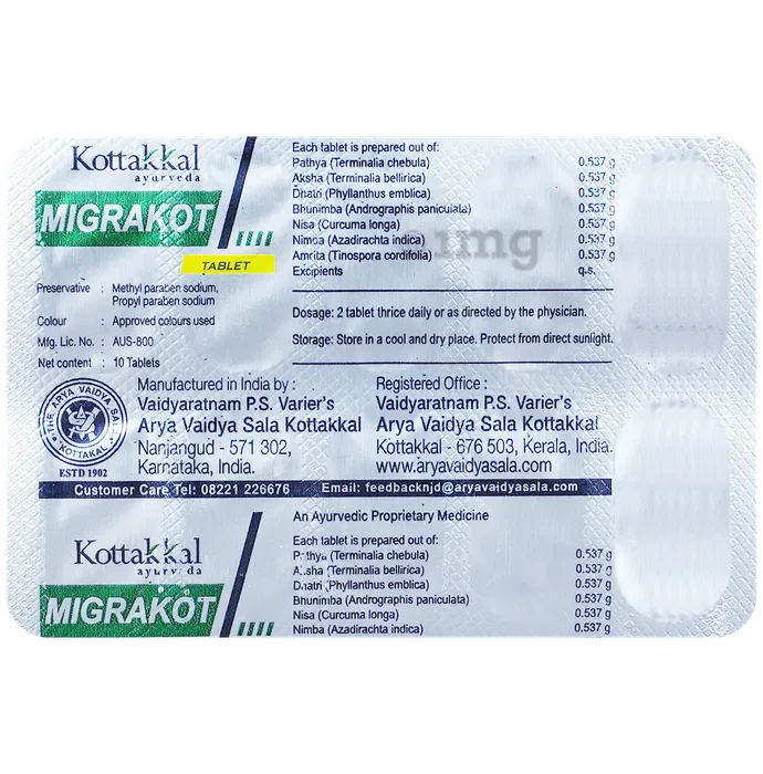Information about Kottakkal Ayurveda Migrakot Tablet
